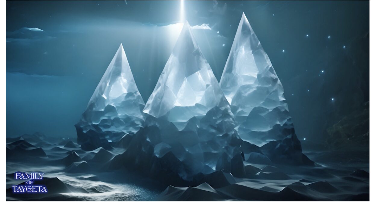 深海、山の地下、砂漠、氷の中に、クリスタル・トランスミッターが設置されています。これらは高さ約66mから99mで、全部で数千個の三角形のクォーツ・クリスタルが配置されています。それぞれのクリスタルは完全にまっすぐに立っており、シフトの瞬間に上昇します。地震、津波、ハリケーン、あるいは地球の自然な動きによる地球の変化のために、クリスタルの配置は常にチェックされています。